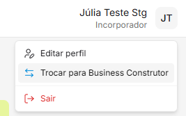 - Se você é um Incorporador e deseja acessar a funcionalidade, basta trocar para o Business Construtor;